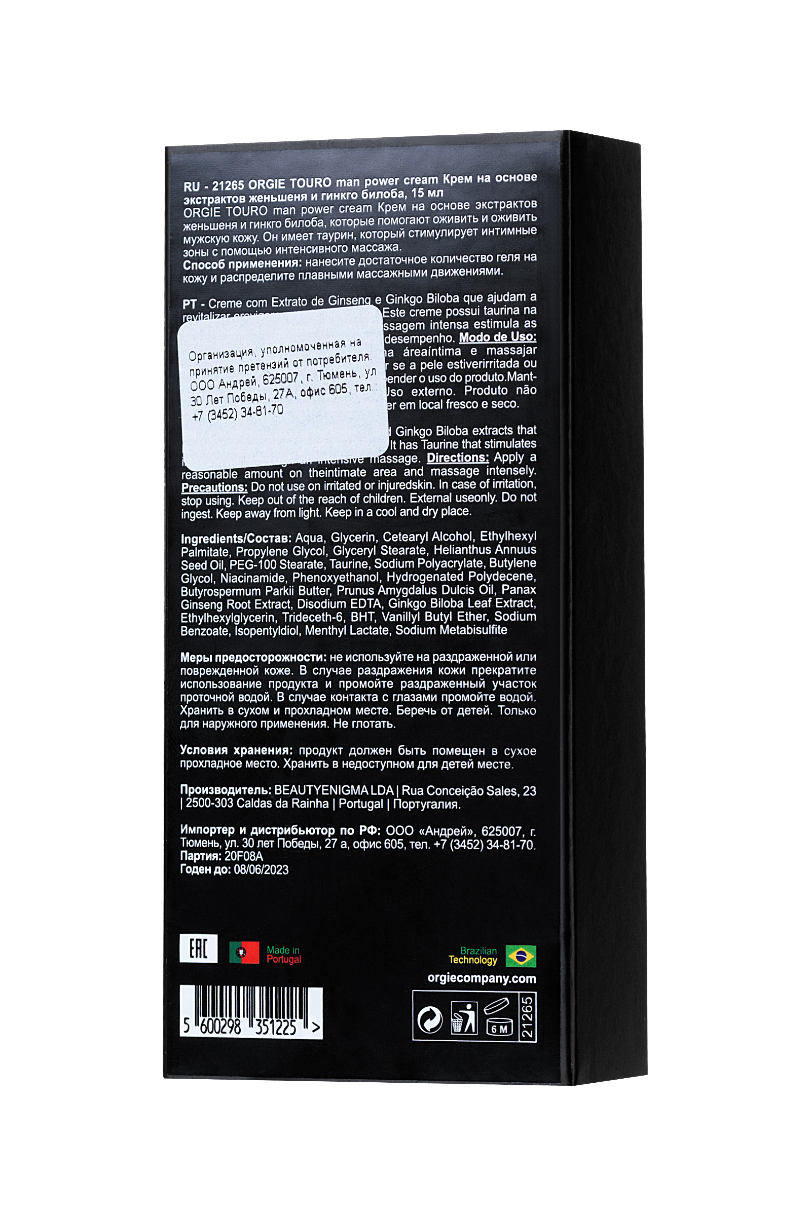Мужской крем для тела с разогревающим эффектом Орджи Touro отлично подходит для тонизирующего спортивного и запоминающегося эротического массажа. После его применения вы ощутите мощный прилив сил. В состав Orgie Touro входят таурин и гинкго билоба — природные соединения, стимулирующие кровообращение. А также женьшень, который действует как естественный афродизиак. Все компоненты крема безопасны и не вызывают раздражения. Способ применения: нанесите достаточное количество крема на кожу. Подождите несколько минут, чтобы почувствовать разогревающий эффект.