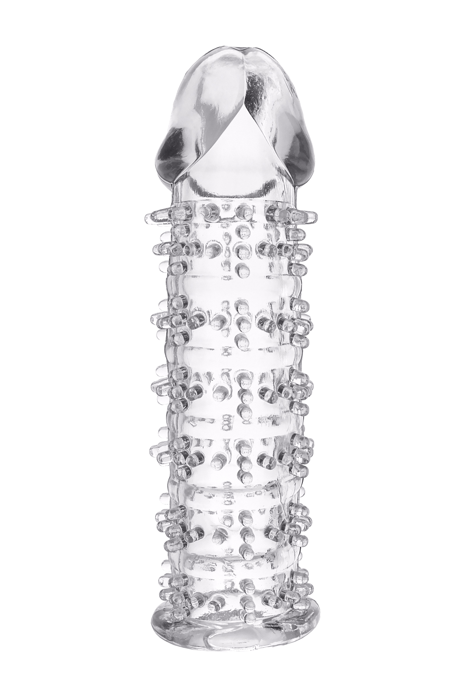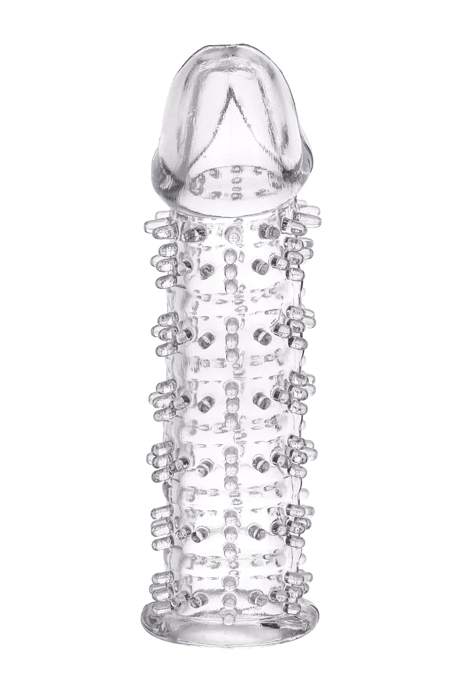 Насадка гелевая прозрачная ,в форме пениса с закрытой головкой покрытая по всей длине мягкими шипиками для внутренней стимуляции влагалища , легко одевается используется со смазкой для лучшего скольжения. увеличивает размеры пениса . Длина 12 см, ширина/диаметр 3 см. Материал ПВХ