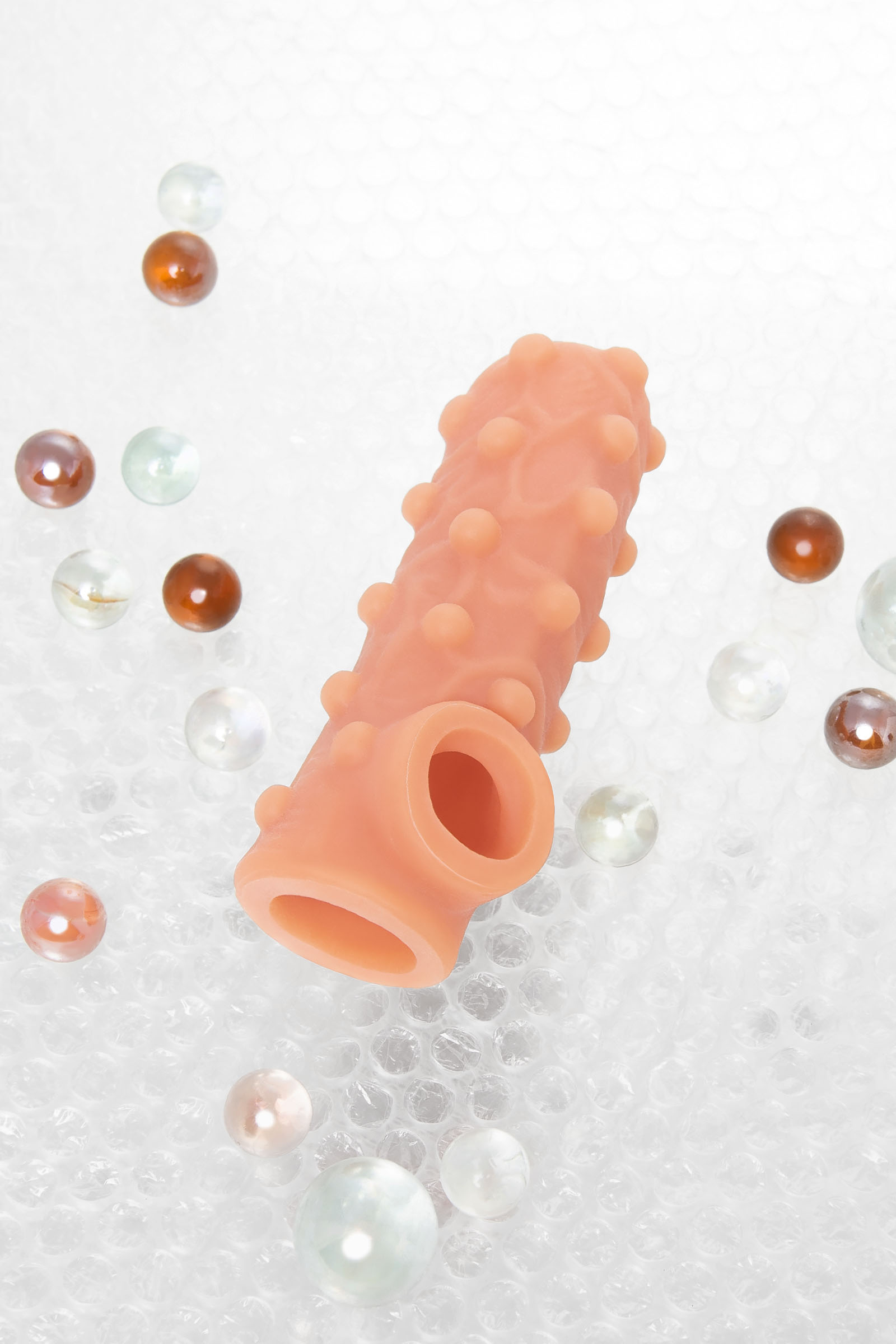 Открытая насадка с фантазийным рельефом от KOKOS предназначена воплотить фантазии о взаимном удовольствии. Реалистичная насадка на пенис - необходимый элемент для вашей сексуальной игры, если вы хотите максимально удовлетворить свою партнершу и сделать секс незабываемым. Откройте новые возможности: Увеличенный объем полового члена на 30% добавляет мужчине уверенности в своих сексуальных возможностях. Дополнительная стимуляция партнерши с помощью рельефа для яркого и насыщенного оргазма. Увеличение продолжительности полового акта у мужчины - задержка эякуляции, и наращивание темпа приближения оргазма у женщины. Насадка имеет форму “рукав”, плотно прилегает к пенису, создавая дополнительную толщину и оставляя головку открытой. Это позволяет сохранить чувствительность головки, задерживая эякуляцию. В основании есть отверстие для мошонки, с помощью которого вы надежно зафиксируете насадку на пенисе, не ограничиваясь в активных движениях. Насадка, за счет плотного облегания мошонки и головки, усиливает эрекцию. Выпуклый рельеф в виде многочисленных вен и внушительных шариков по всему стволу насадки очень хорошо стимулирует зону G, вход во влагалище и настойчиво ласкает чувствительные зоны. Вариативность стимуляции регулируется активным темпом движения вперед-назад и изменением угла проникновения. Дополнительный объем дарит то самое чувство наполненности, увеличивая поток возбуждения. Мужчина тоже будет ощущать стимуляцию за счет давления стенок влагалища на пенис. Супер эластичный материал быстро принимает температуру тела, отлично тянется, сохраняя при этом прочность. Нежное и мягкое покрытие такое же приятное на ощупь, как и человеческая кожа. Насадка сделана из высококачественного безвредного для человеческого организма материала, который прошел необходимые тестирования и сертификацию.Рекомендуем использовать до и после применения - дезинфицирующее средство для игрушки, чтобы обеспечить длительное скольжение и комфорт интимных отношений, рекомендуем использовать смазку на водной основе. Для бережного хранения материала пересыпать пудрой для игрушек. Хранить при температуре не выше 35 градусов, избегать попадания прямых солнечных лучей.