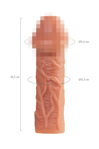 Увеличивающая насадка с изгибом и фантазийным рельефом в виде вен и пупырышек от KOKOS открывает новые возможности для взаимного удовольствия и воплощает фантазии о внушительном размере пениса. Увеличенный размер и объем полового члена добавляет мужчине уверенности в своих сексуальных возможностях. Дополнительная стимуляция партнерши для яркого и насыщенного оргазма. Увеличение продолжительности полового акта у мужчины - задержка эякуляции, и наращивание темпа приближения оргазма у женщины. Реалистичная насадка на пенис - необходимый элемент для вашей сексуальной игры, если вы хотите максимально удовлетворить свою партнершу и сделать ваш секс незабываемым. Насадка придает дополнительный объем и длину половому члену. Мощная головка имеет рельеф из мелких пузырьков и крупный выступ. Изогнутая форма и три выступающих бугорка очень хорошо стимулируют зону G и вход во влагалище. Контрастный переход от головки к стволу и 3 выпуклости на передней части насадки, благодаря изогнутой форме, увеличивают силу стимуляции самых эрогенных зон влагалища. Особенный рельеф в виде многочисленных вен по всему стволу насадки деликатно ласкает чувствительные зоны. Дополнительный объем дарит то самое чувство наполненности, увеличивая поток возбуждения. Мужчина тоже будет ощущать стимуляцию за счет давления стенок влагалища на пенис. Для идеальной посадки по длине пениса используйте губчатую вставку, которая находится внутри насадки, подрезав ее до нужной длины. Не забудьте надеть презерватив в этом случае. В основании есть отверстие для мошонки, с помощью которого вы можете надежно зафиксировать насадку на пенисе и не ограничивать себя в активных движениях. Супер эластичный и нежный материал быстро принимает температуру тела, отлично тянется, сохраняя при этом прочность. Долговечность использования при соблюдении правил хранения и ухода за насадкой. Насадка сделана из высококачественного безвредного для человеческого организма материала, который прошел необходимые тестирования и сертификацию. Рекомендуем использовать до и после применения - дезинфицирующее средство для игрушки, чтобы обеспечить длительное скольжение и комфорт интимных отношений, рекомендуем использовать смазку на водной основе. Для бережного хранения материала пересыпать пудрой для игрушек. Хранить при температуре не выше 35 градусов, избегать попадания прямых солнечных лучей. Перед хранением необходимо хорошо просушить