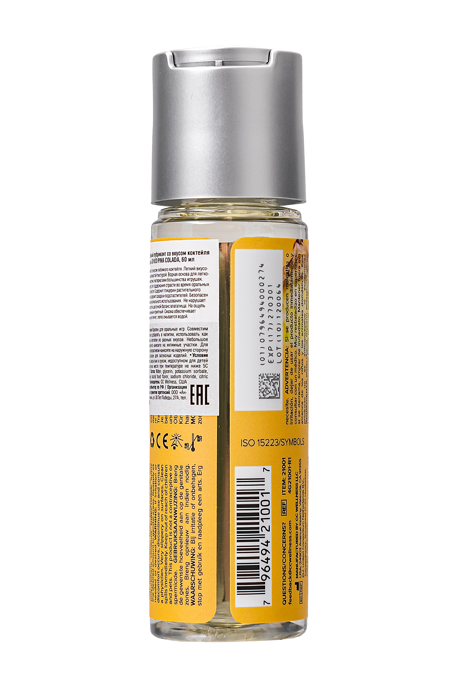 Погрузитесь в атмосферу тропического наслаждения с лубрикантомСистем Джо Pina Colada — настоящим праздником вкуса и прикосновений. Смесь сочного ананаса и нежного кокоса перенесет вас на солнечный пляж с каждым прикосновением, добавляя вашим оральным ласкам нотки экзотики и удовольствия. Этот лубрикант создан, чтобы вдохновлять, дарить радость и оживлять ваши самые чувственные моменты. JO H2O Pina Colada на водной основе обеспечивает шелковистую текстуру и длительное скольжение, превращая каждое прикосновение в нежное наслаждение. Его формула с растительным глицерином абсолютно безопасна для проглатывания и влагалищного использования, сохраняя естественный баланс и микрофлору вашего тела. Более того, этот лубрикант не содержит сахара, подсластителей и алкоголя. С нулевой калорийностью этот лубрикант позволяет наслаждаться сладким вкусом без ущерба для фигуры. JO H2O Pina Colada легко смывается водой, не оставляя липкости или пятен, и обладает увлажняющими свойствами, которые делают кожу мягкой и нежной. Этот лубрикант идеален для перехода от оральных ласк к другим видам близости, а также совместим с большинством игрушек и презервативов. Элегантный флакон объемом 60 мл с удобным дозатором позволяет расходовать средство экономно и держать его всегда под рукой. JO H2O Pina Colada станет вашим идеальным компаньоном для добавления ярких, страстных и незабываемых моментов в интимную жизнь. Позвольте JO H2O Pina Colada привнести вкус тропиков в ваши прикосновения, напитки и фантазии, создавая безупречное сочетание удовольствия и игривости. Как использовать: нанесите небольшое количество на интимную зону, а если используете презерватив, распределите средство по его внешней стороне. Для максимально комфортного использования в воде рекомендуется наносить перед контактом с водой. Повторяйте нанесение по мере необходимости, наслаждаясь каждым мгновением. После использования средство легко смывается водой с мылом. Качество, которому можно доверять: Произведенный в США, лубрикант соответствует самым строгим стандартам качества, имеет лицензию FDA и сертификацию ISO. Это ваш выбор для удовольствия и безопасности, которому можно доверять. Объем: 60 мл. Производитель: CC Wellness, США